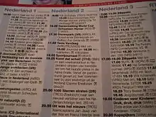 A Dutch TV listing which show what time a certain program start broadcasting.