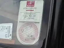 A tax disc on a car's windscreen