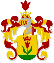 Or, on a terrace vert a tulip gules, slipped proper and crowned of the first — Van Gennep (see quote).