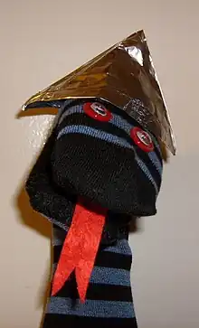 A sockpuppet with a tin-foil hat