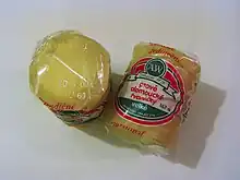 - (usually plural only) Olomouc cheese, a kind of ripened soft cheese with a strong scent, distinctive pungent taste and yellowish colour, nowadays made in the town of Loštice in the Czech Republic