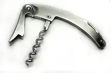 1. A type of corkscrew having a folding design and including a small blade resembling a pocketknife