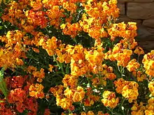 - Any of several short-lived herbs or shrubs of the Erysimum genus with bright yellow to red flowers.