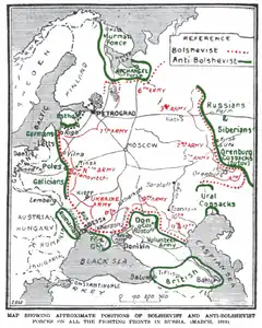 The positions of the Allied expeditionary forces and of the White Armies in European Russia, 1919.