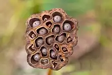 - An American lotus (Nelumbo lutea), an aquatic plant found from Minnesota and Oklahoma to islands if the Caribbean.