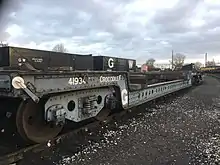 - (rail transport, Britain) An open goods wagon with a well (depressed loadbed) between the bogies or axles.