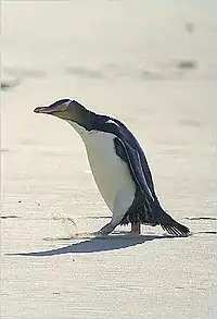 yellow-eyed penguin (plural yellow-eyed penguins)