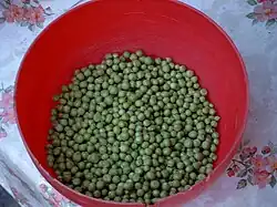 - pea (several plants of the family Fabaceae, especially Pisium sativum)