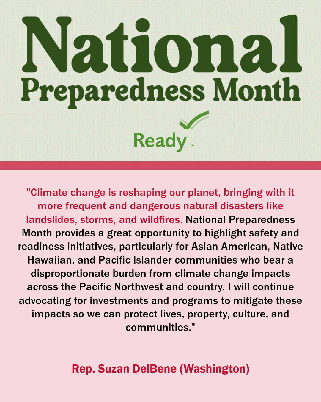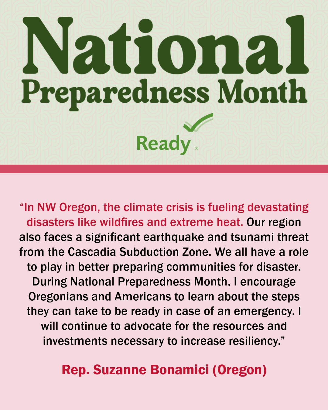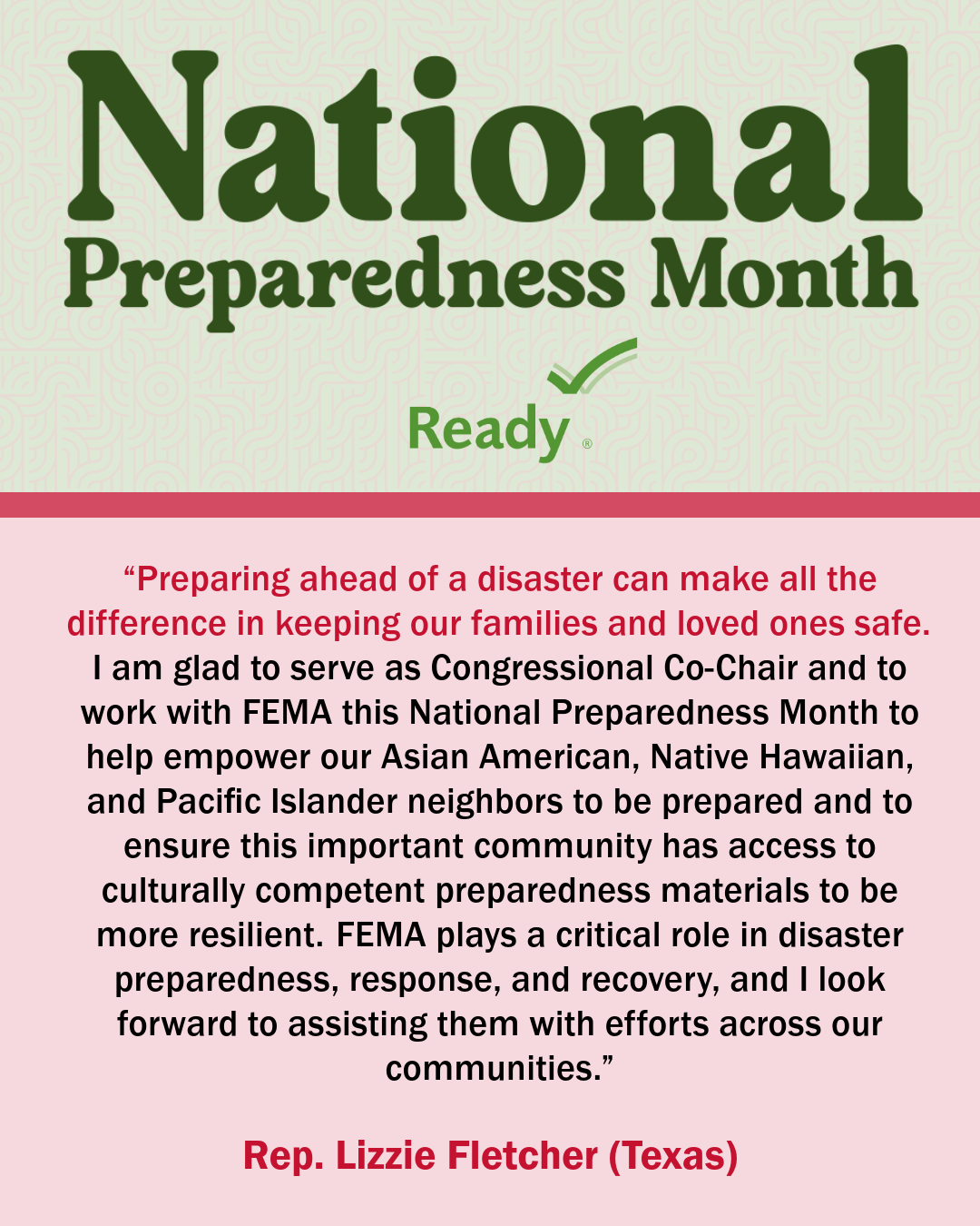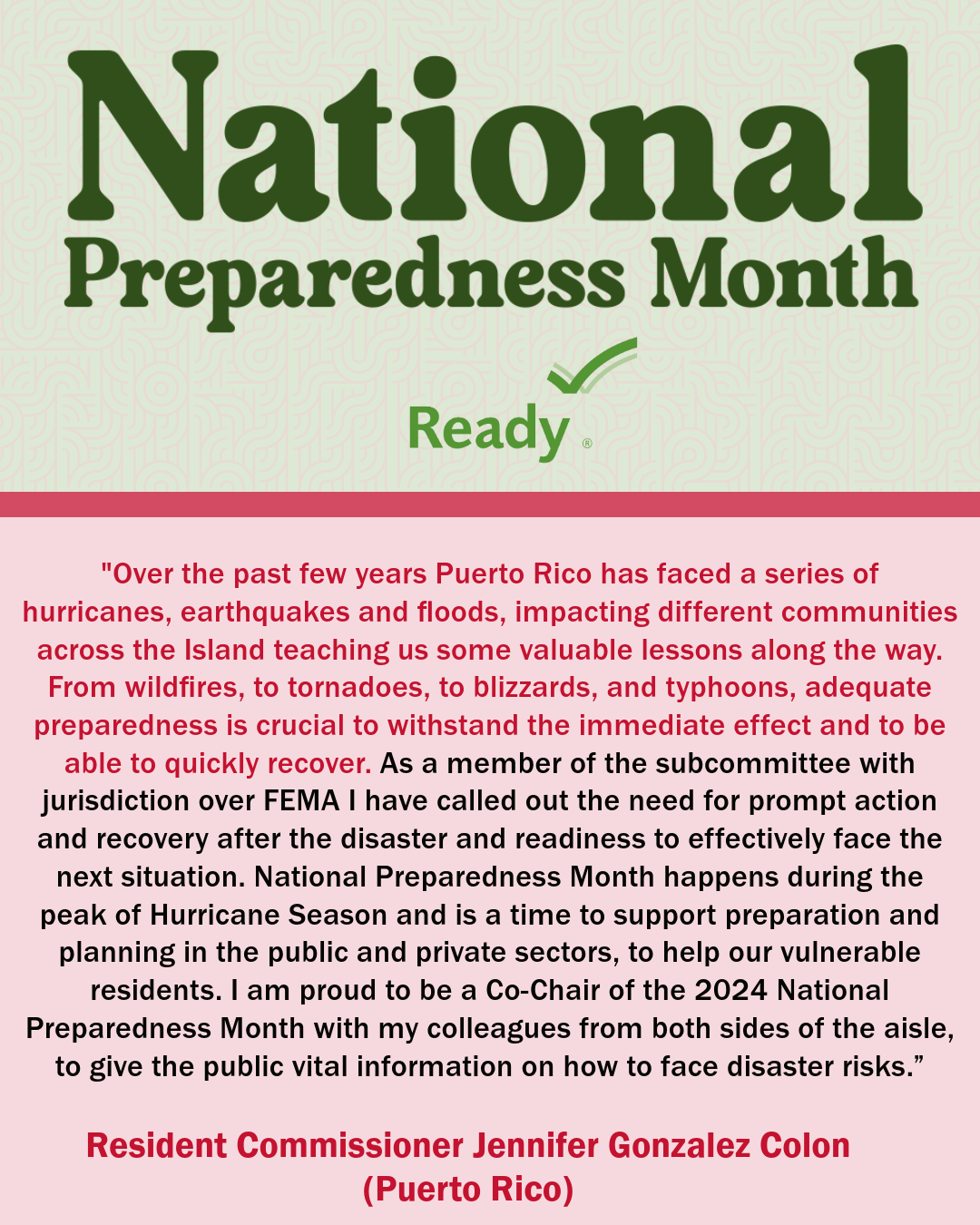 A collection of graphics featuring quotes from the 2024 National Preparedness Month Congressional Co-Chairs.